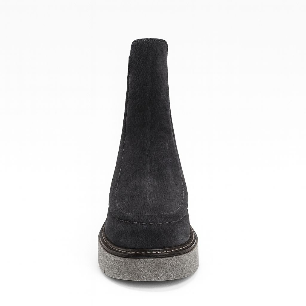 Suede ankle boots with side elastics. The TIUMEN ankle boots are distinguished by a delicate side detail with a shearling effect, which adds originality to the model. Their velvety texture and elegant design provide warmth and comfort, making these ankle boots a perfect choice to wear on cold days.