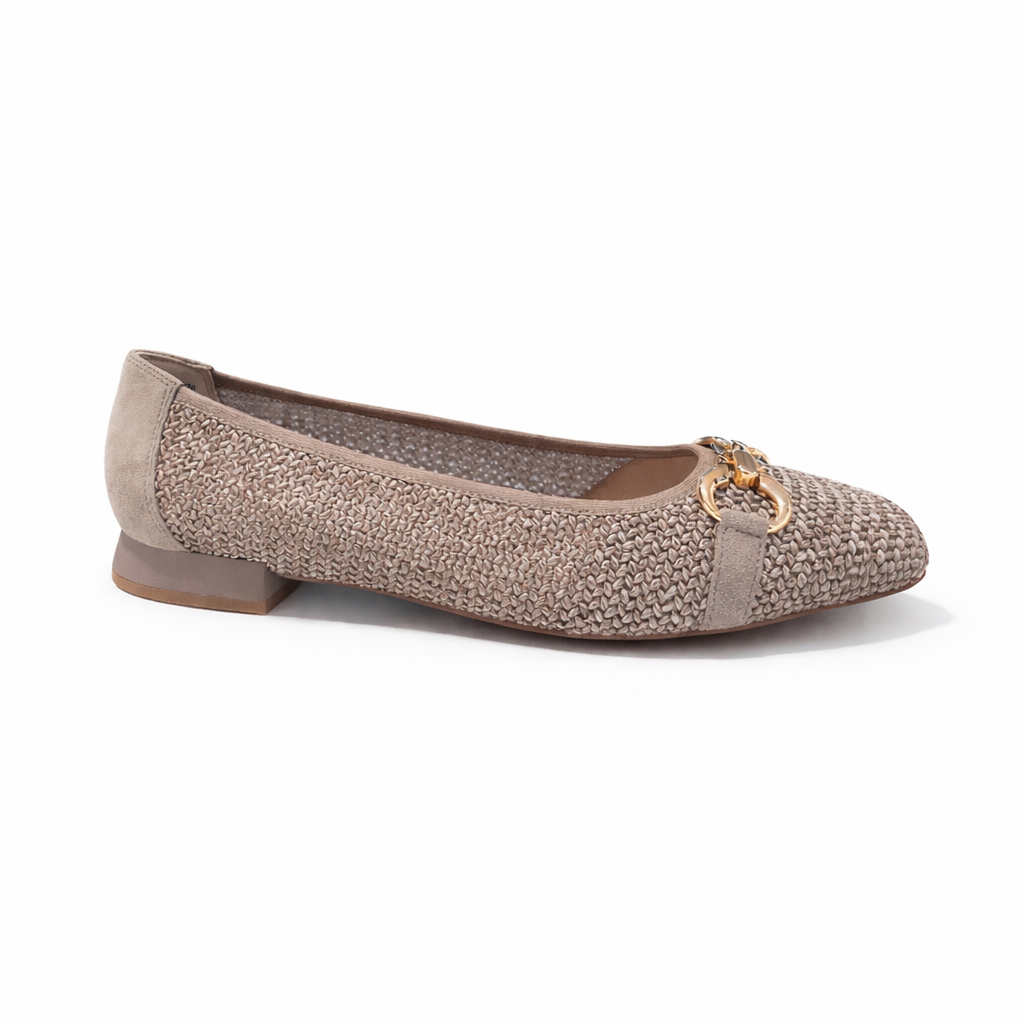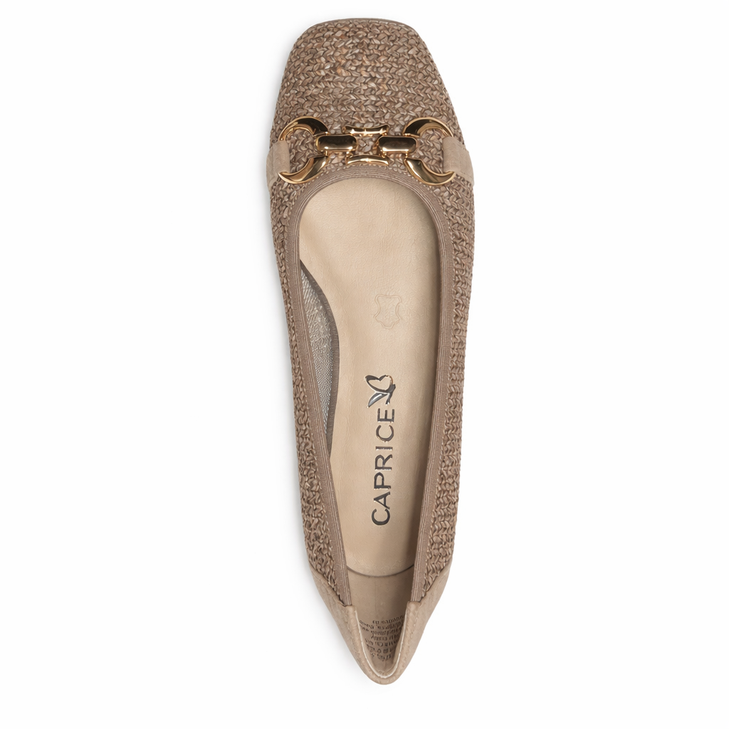 Discover the new collection of Caprice women's ballerinas with a heel height of 1.8 cm and a shaft height of 6.5 cm. The G-width ensures optimal wearing comfort. The upper is made of a material mix of leather and textile and the toe of the shoe is karrèe. The trapeze heel and the CAP Memotion Technology make this ballerina a must-have for women.