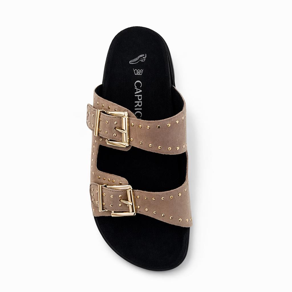 Effortlessly stylish and easy to wear, this double-buckle slide sandal is the perfect blend of casual comfort and modern design. Its minimalist silhouette is elevated with subtle metallic stud detailing, making it a versatile choice for everyday outfits.