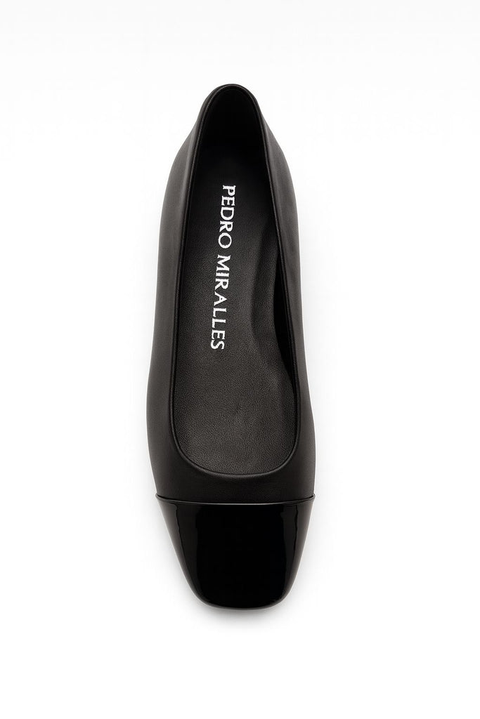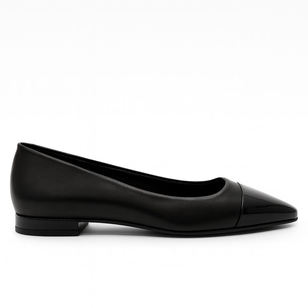 Black leather ballet flats. A classic ballet flat design with a ruched detail at the back that makes all the difference. It adapts perfectly to the foot, offering optimal support. A perfect wardrobe staple.