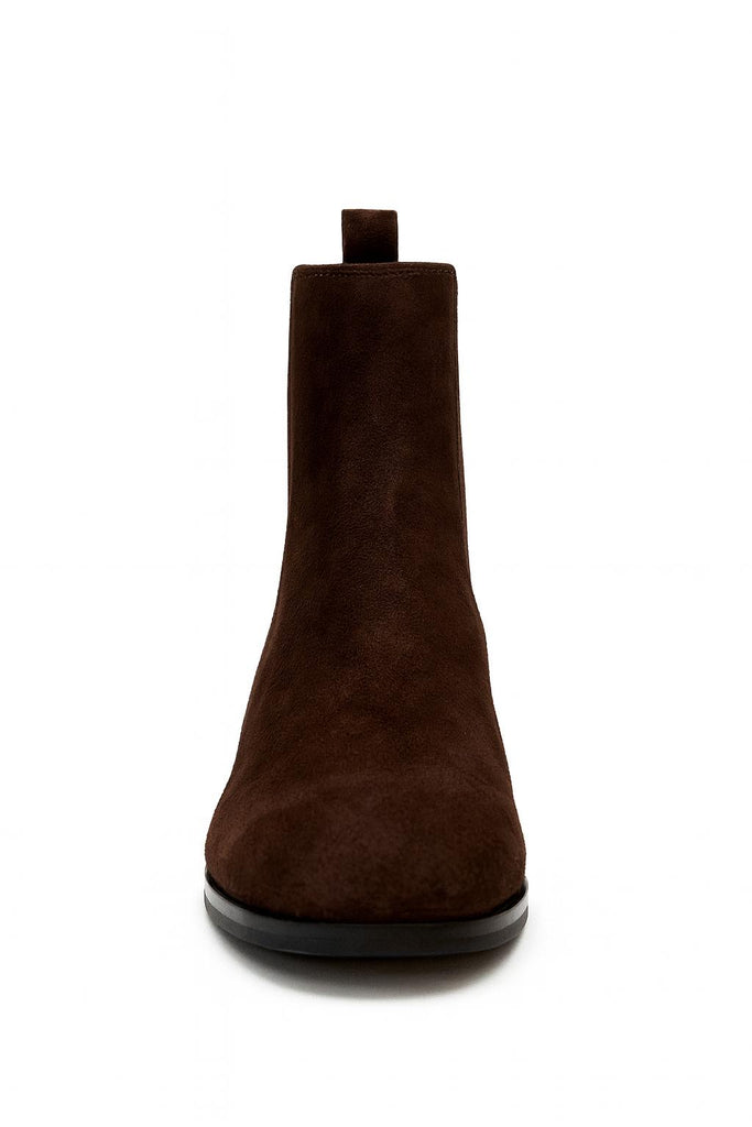 Introducing   V30 ,Ankle Boot: a timeless addition to your footwear collection. Crafted with fine black suede  and a low heel, this chelsea boot exudes understated elegance. Perfect for any occasion, it's versatile, comfortable, and effortlessly chic.