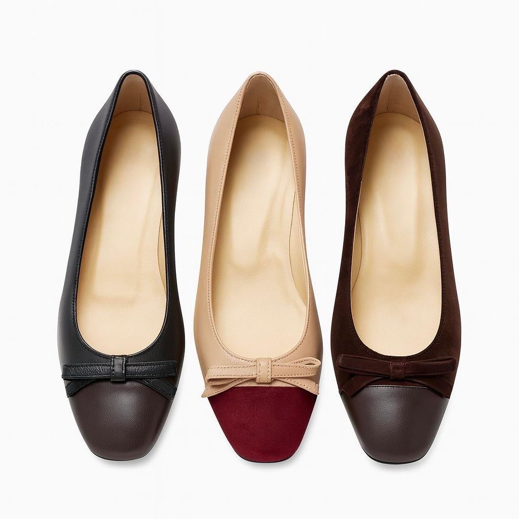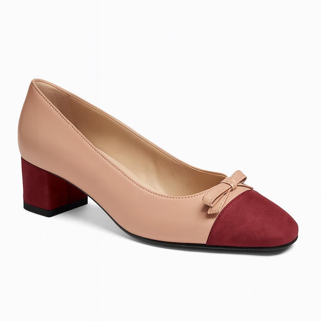 Our CARLA is a chic and classic pump, made in Italy crafted from soft nappa leather; it features complementing tones of leather, it has square toes, finished with a bow and covered heel we are yours with anything from denim to dresses.