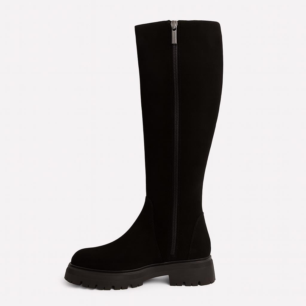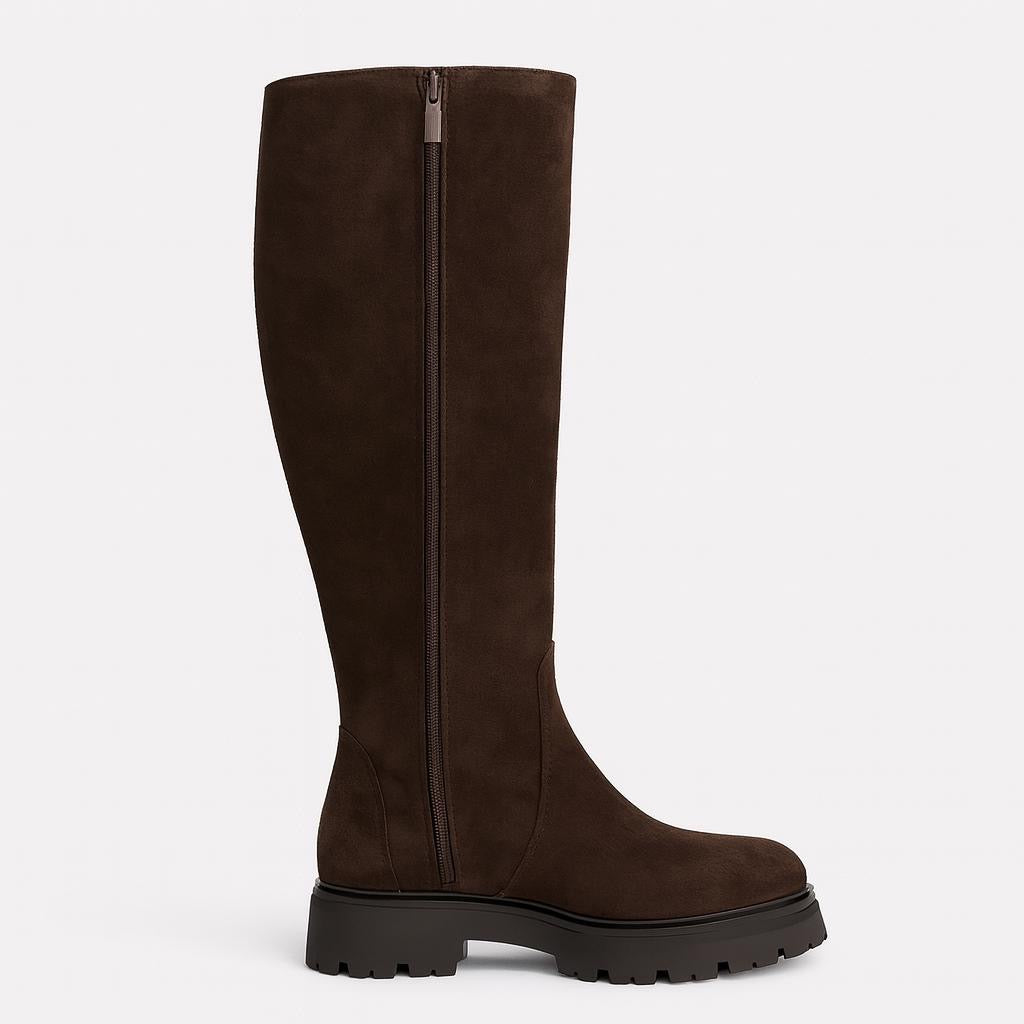 These trendy new Italian knee-high boots are beautifully crafted in soft suede ; featuring inside zip with round toe and sturdy sole, have it for any modern wardrobe.