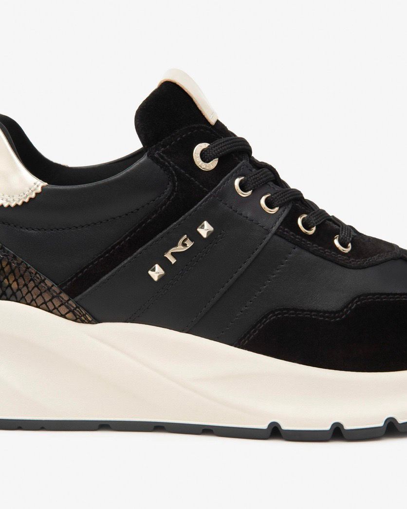 NeroGiardini sneakers, personality and unique style. NeroGiardini footwear is made in Italy from high quality materials, using the latest crafting techniques. Each shoe is the result of artisan know-how passed on from generation to generation. All styles are designed to provide versatile comfort all day, at work or on a special evening. NeroGiardini’s designs are always inspired by new styles, its shoes always on trend and one of a kind. NeroGiardini’s bag collection: a range to match your shoes, for an impeccable total Made in Italy look.In addition to its sweat-absorbing and quick-drying capabilities, which keep the foot dry in all weather conditions, the DRY-GO® polyurethane insoles now also feature the innovative Memory high shock-absorbing function, which gently moulds to the foot ensuring comfort and well-being.The Made in Italy production of NeroGiardini footwear is labelled with the flag printed on the outsole and on the packaging.